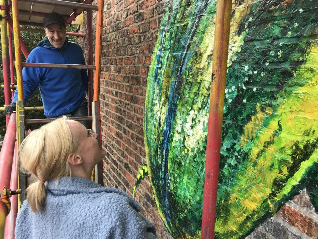 I first meet him finishing off a ghostly white outline of the tansy beetle on Queen’s Street, a far cry from the luminous finished piece. There is a reason why some people call tansy beetles ‘the Jewel of York’: these little beetles are a gorgeous shining green, with iridescent tinges of blue and orange. In the UK, they are found almost exclusively along the banks of the River Ouse, in an area of only 30 kilometres; they live amongst the bright yellow petals of tansy plants, a home at risk from invasive Himalayan Balsam and habitat loss. Both ATM and New Networks are keen on its potential as a symbol of York, particularly as the city has so little street art (aside from the massive, and massively famous, Bile Beans mural). As a street artist, the rare negative comments ATM gets are mostly from older people: an ‘anti-youth’ sentiment, as he puts it. In contrast, other young street artists are remarkably respectful: “There was a chaffinch I painted in Brixton- it’s got tags all around it, but none on the bird itself”.