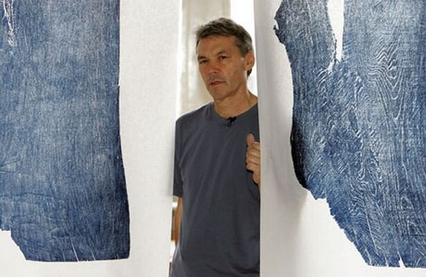 I transfer images from large planks of wood, I also transfer images directly from objects which are found in the landscape in which I work… deer, feathers, fish etc. A proportion of my work is constructed or drawn on the landscape – fish, cetaceans and more ambiguous images, hundreds of feet long, some permanent and some drawn in sand and snow, often with a large rake.